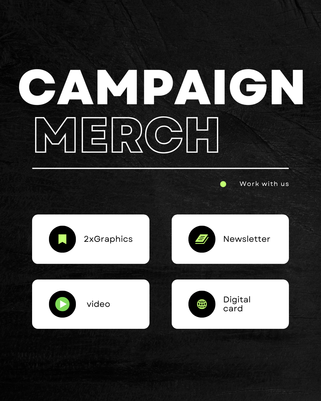To achieve a successful campaign, it is essential to incorporate the following elements: compelling visuals (images), an engaging video, a well-crafted newsletter, and a tangible asset that will remain useful beyond the campaign's duration. Such assets could include a digital card, a new LinkedIn cover image, a business portfolio, or a profile picture for Meta/X. Our campaign merchandise services offer a wide range of creative options to ensure your brand stands out and resonates with your target audience. By leveraging these elements, you can effectively capture the attention of potential customers and reinforce brand loyalty among existing ones. Additionally, the integration of data analytics can provide valuable insights into customer behavior, allowing you to tailor future campaigns to meet the evolving needs of your audience.